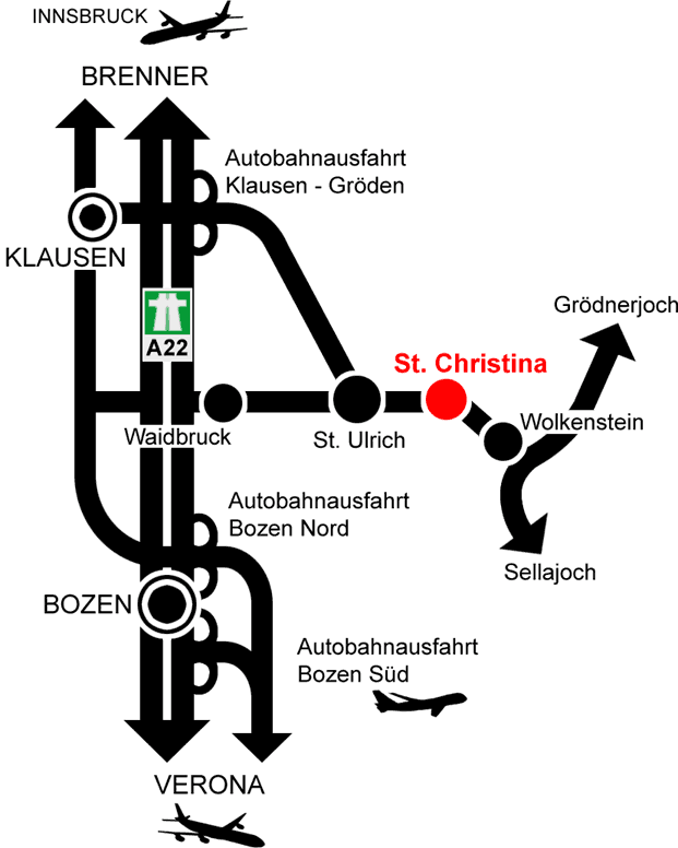 mit der Beschilderung "Gröden" ca. 25 Minuten lang folgen.
